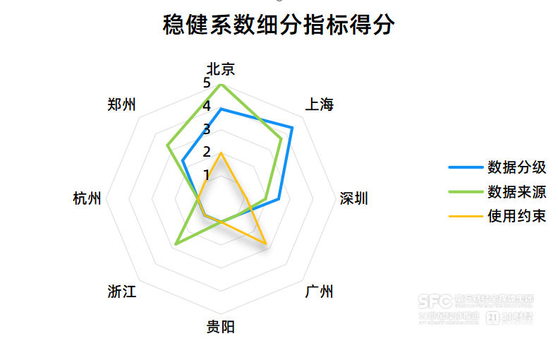 “稳健系数”评分由数据分级、数据来源和使用约束三个维度组成,本月得分较上月从2.08降至1.99。从各大数据交易机构得分来看,各数据交易机构在各维度得分差异明显。其中,北京国际大数据交易所和上海数据交易所综合表现明显优于其他数据交易机构。在“数据来源”方面,北京国际大数据交易所以5.00的满分领先,反映其在数据治理的合规性上有显著优势,有助于在数据交易环节降低非法数据流通的风险。在“使用约束”这一维度,广州数据交易所得分较高,其在数据产品的应用场景、使用主体、转让许可、数据出境等方面有较明确的约束规定,一定程度上加强了数据的安全性与隐私保护。此外,杭州数据交易所和深圳数据交易所在三个细分指标上的综合得分较低,整体数据交易的合规性亟待进一步提高,除了确保数据来源的合法性外,还需强化交易环节的审查与监管。