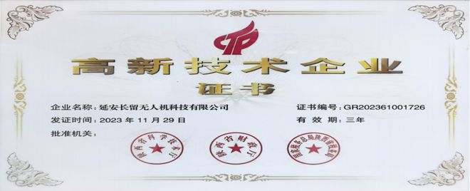 公司获得了高新技术企业认定,与延安职业技术学院共建了产学研基地,是陕西省无人机技术服务协会副会长单位。