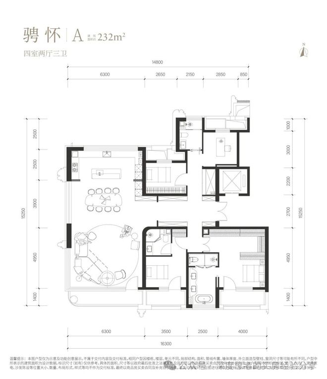 紫京宸园一共12栋楼,一共815户,面积段大概在-平。其中135的户型占比15%,145占比25%,170占比40%,400平的有2套,200平以上的占比20%。