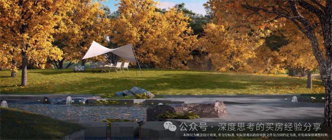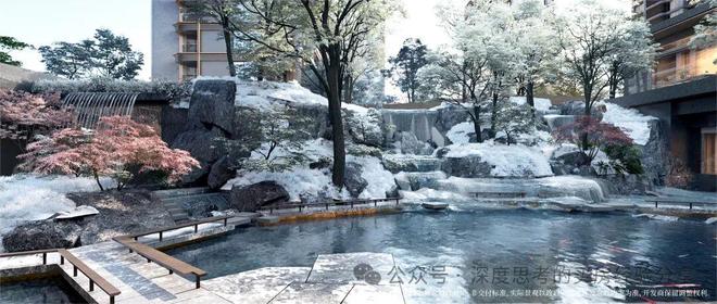 约45米宽瀑布群,千瀑飞雪,万壑争流;约3000㎡景观水系溪山行旅,平湖秋月,飞桥卧波;约2000㎡水畔东坡,银杏山林,观四季流转;约100米浣花溪谷,春意盎然,犹在画中游。